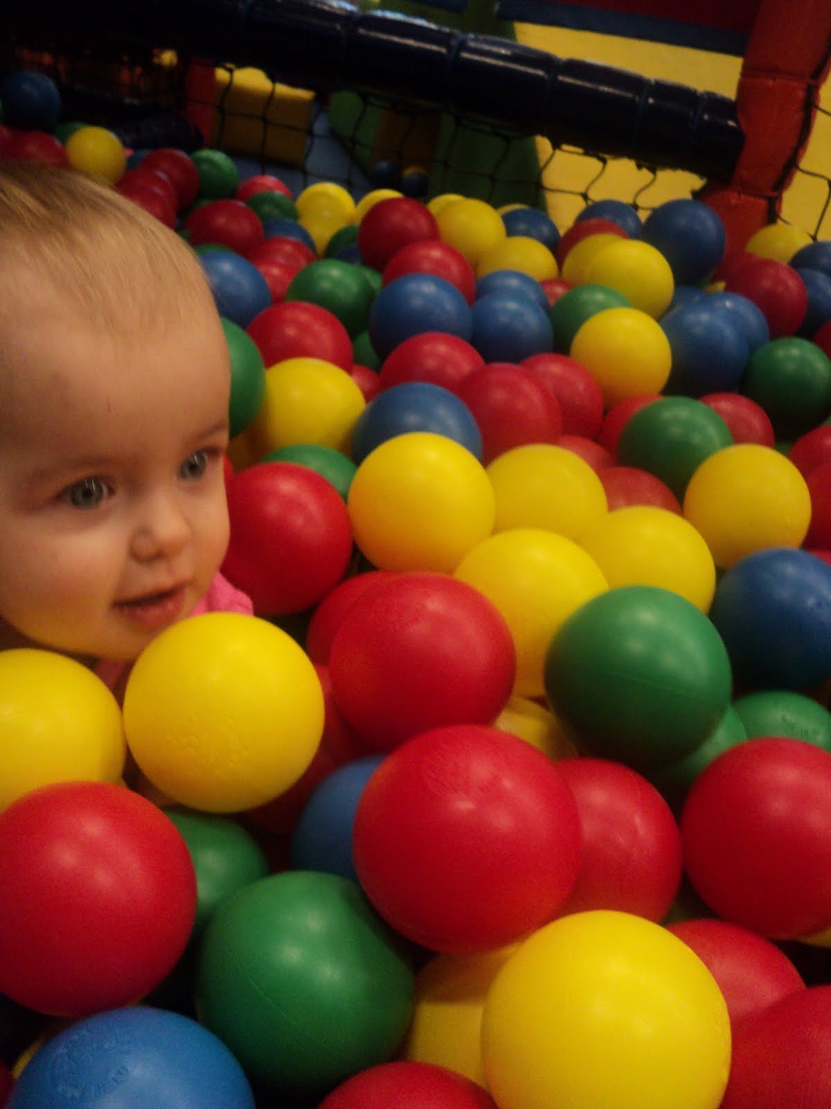 Min världsgoa plutta och jag vandrade först till Ica Maxi och handlade lite idag mitt på dagen, där efter besökte vi båda Sportys Lekland för första ggn; det var väl inte direkt 1-års bebis vänligt, men de hade en liten hörna med bollar/rutchkana/mjuka klätterklossar.. Sen tyckte Mirabelle även det var jätteroligt att hoppa på studsmattorna längst bak i lokalen, hon tittade på pojken som studsade på den andra mattan och härmade. Hon härmar allt möjligt nu för tiden, det e skitcoolt. Jag tror det finns endel intelligens i den där ungen. Hooray :)