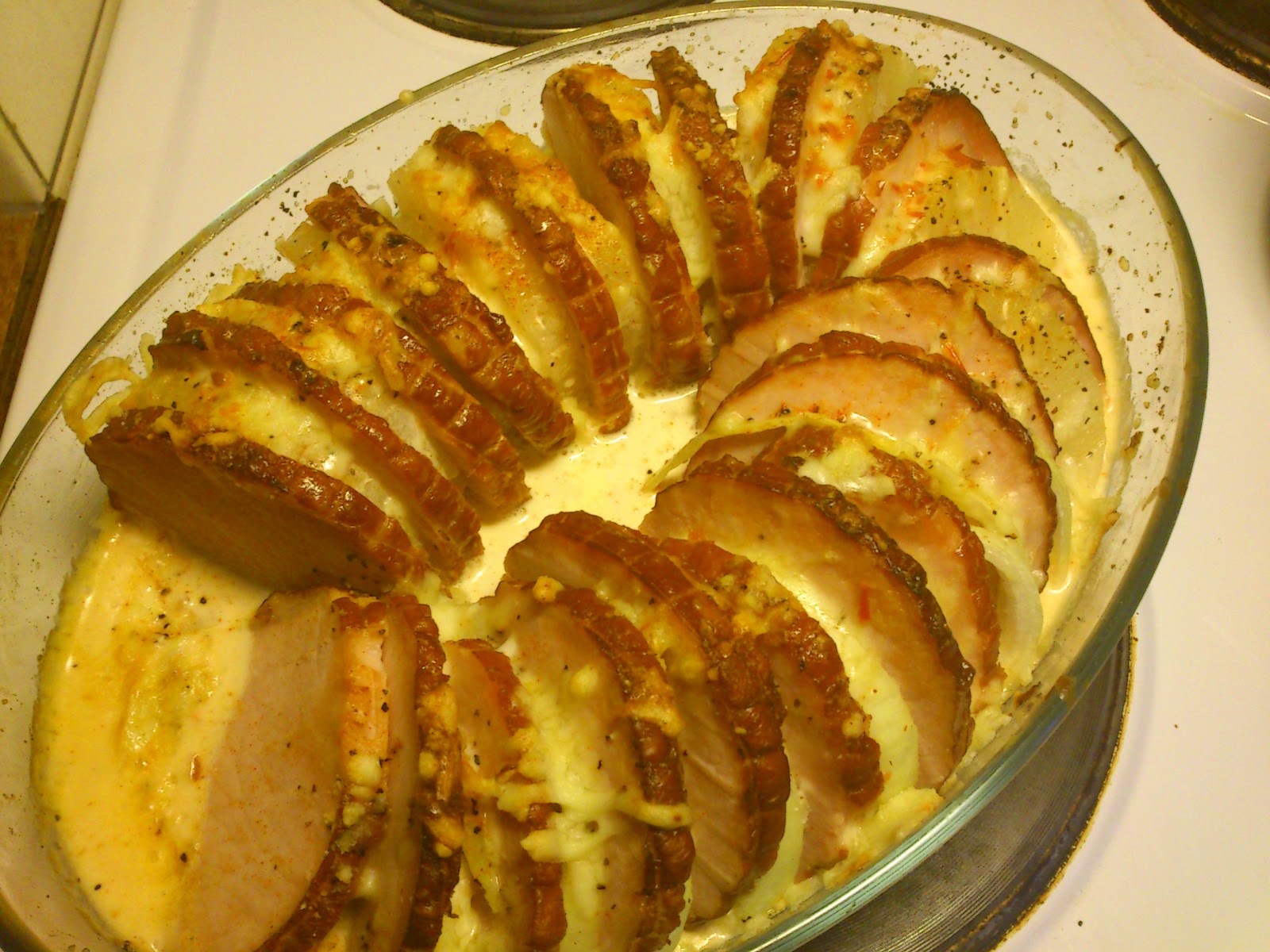 Ikväll har vi ätit kassler; enkelt och mättande. Kassler, ananas, lök, ost, grädde med lite chilisås. Jasminris till det.