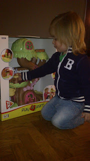 Annars blev det inte mycket gjort idag. Lämnade Mirabelle på dagis kl 9 och sen hängde vi mest Matilda och jag. Fick tillbaks en uppsats där jag skrev om bildligt språk i två dikter som jag fick godkänt i. Och sen låg vi mest i sängen och glodde och trodde att den andre skulle somna, men tji fick vi. Helt plötsligt var det dax att hämta Mirabelle på förskolan. Knallade ner på stan efter hämtning; shoppade nya lunchlådor och en ny låda till LEGO fönster/dörrar och sen vidare mot BR Leksaker där Mirabelle nyttjade ett presentkort och köpte sig ett Fairy Tree House, superfint :)